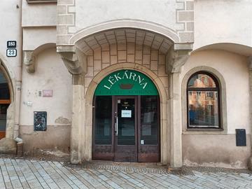 Historie domu na Obrokové č. 25 sahá minimálně do druhé poloviny 14. století. První doložitelná písemná zmínka o něm je z roku 1363. Samotná lékárna fungovala zpočátku ve vedlejším domě na Obrokové č. 23, a to už od poloviny 17. století. Její provoz se o tři století později, konkrétně v roce 1954, rozšířil do vedlejšího domu na Obrokové č. 25, ve kterém do konce druhé světové války fungovala tzv. Bornemannova tiskárna a knihkupectví. Dům má tak dlouhou a pestrou historii a vypráví příběhy obyvatel našeho města napříč několika staletími.